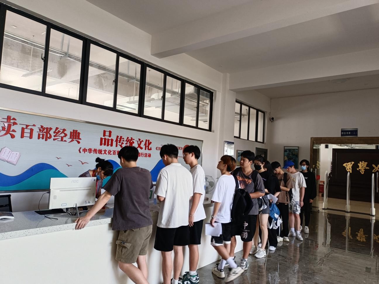 为配合学校做好大三学生的离校工作,自2023年63起,图书馆在各个服务窗口增派工作人员中午不休息,加班加点为学生办理离校手续,确保每个学生手续齐全,正常离校。(陈兰摄)