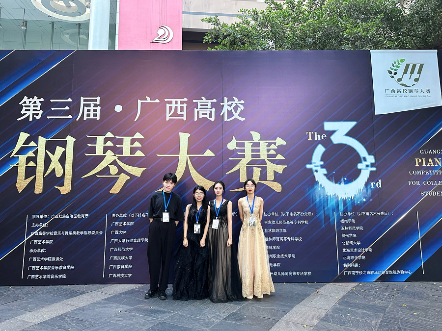 2022年10月28日-30日,第三届广西高校钢琴大赛在广西艺术学院举行。我校人文教育学院学生朱永之、李洁、刘菁菁、梅紫怡代表学校参赛。