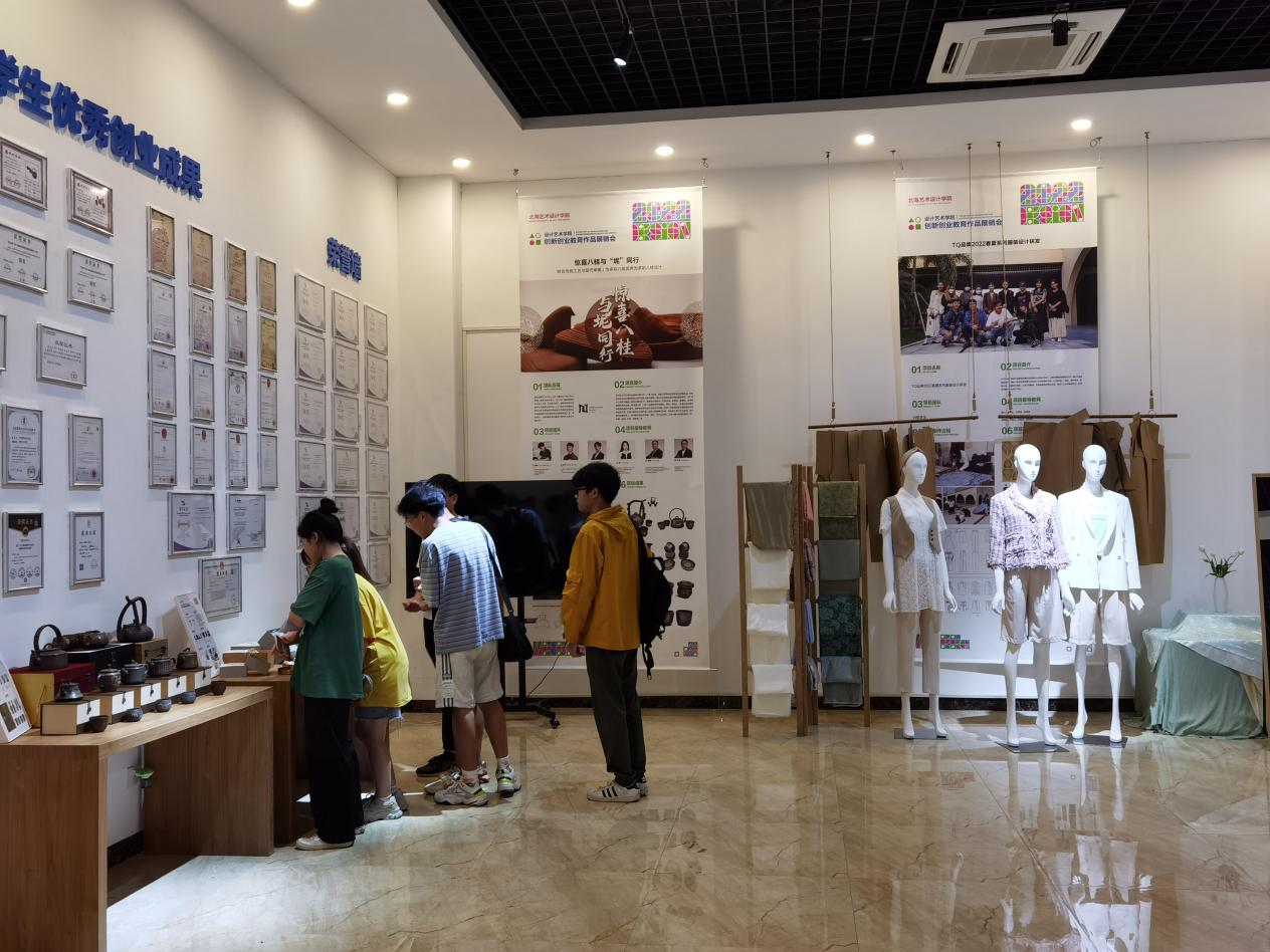 2022年5月23日,北海艺术设计学院设计艺术学院大学生创新创业教育作品展销会在北艺服装楼一楼创新创业展销中心拉开帷幕。