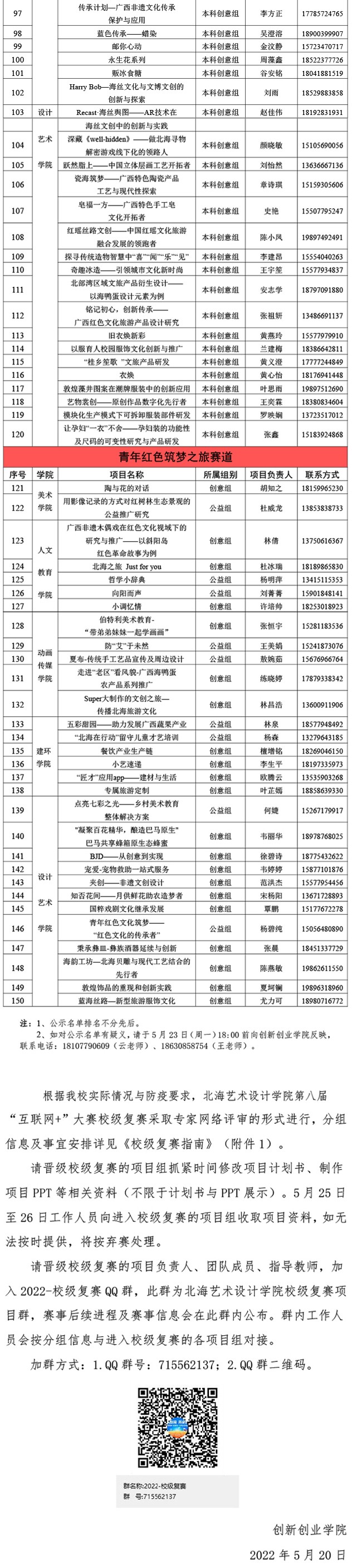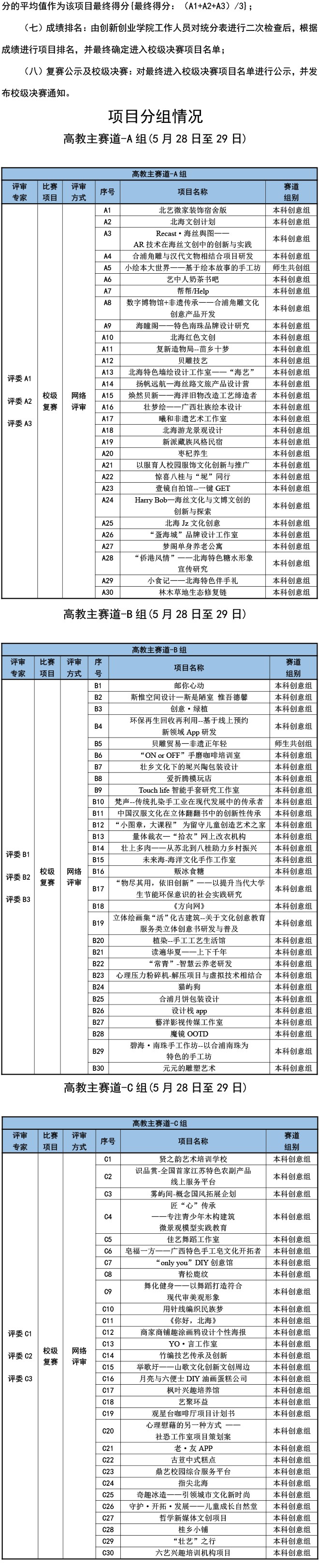北海艺术设计学院第八届中国国际“互联网+”大学生创新创业大赛校级复赛入围名单公示与参赛通知