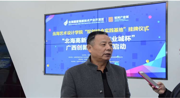 共青团北海市委员会领导表示高新区银河产业城致力于为广大创客、企业搭建创新创业平台,这与团市委的工作方向是一致的,对此表示赞同和支持。今天的挂牌活动,是一个好的开始,希望高新区银河产业城和北海艺术设计学院把本次活动办得红红火火,为日后的深化合作打好基础。