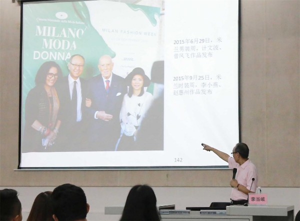 讲座中,李当岐教授从中国服饰文化的根基讲起,向我们深刻分析了中国当代时尚文化潜力,特别提到了关于前开式衣服开襟朝向的文化差异。同时,从不同时期不同地域的文化差别、不同的服装功能意识、不同的着装观念、不同的着装方式和不同的变迁过程等五个方面向我们详细对比了中西方服饰文化的区别。李教授说,从历史上看,中国服饰经历了五次变革,中国服饰文化具有极大的包容性、内涵丰富多样。