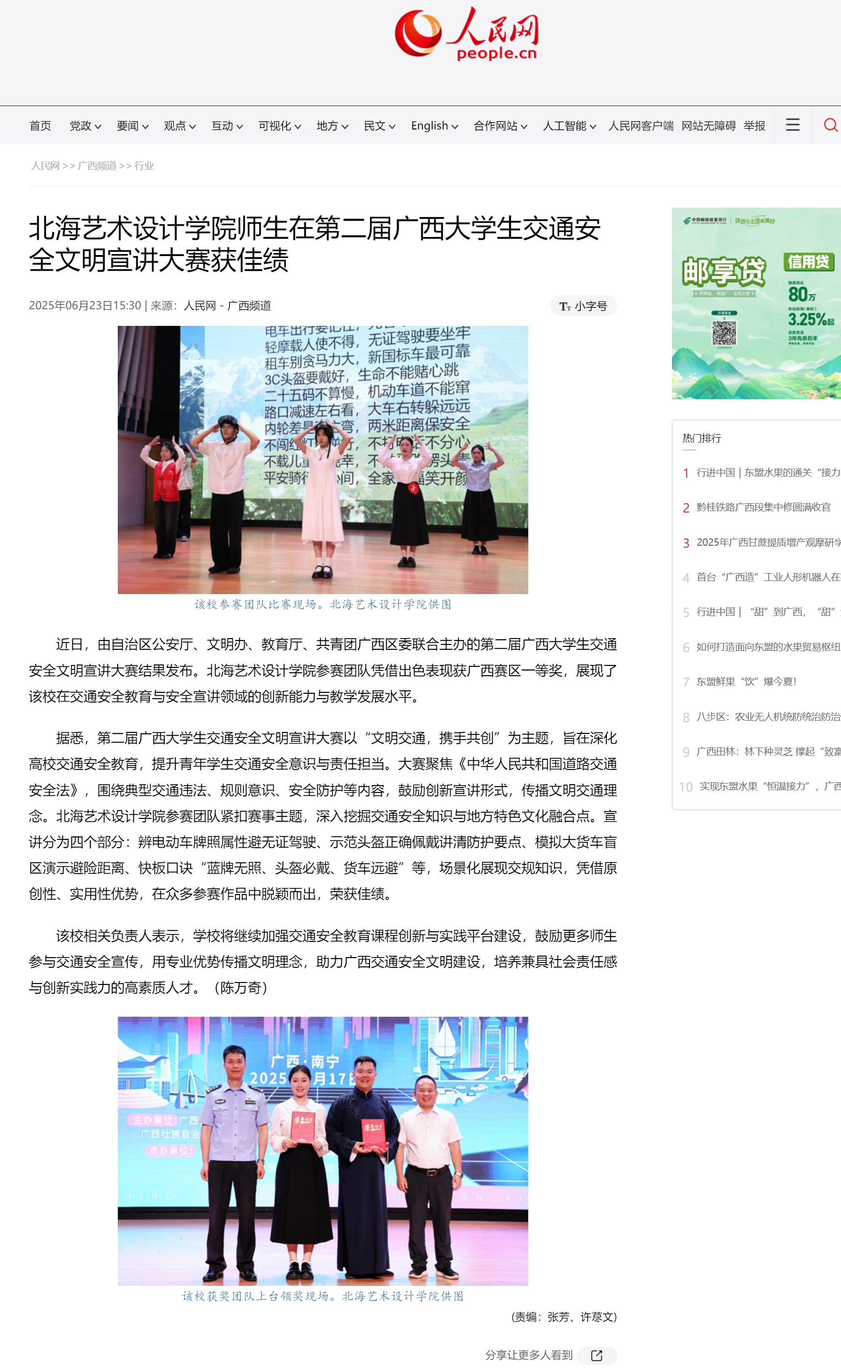 人民网:北海艺术设计学院师生在第二届广西大学生交通安全文明宣讲大赛获佳绩
