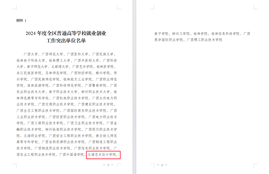 近日,根据自治区教育厅下发《关于表扬2024年全区普通高等学校就业创业工作突出单位和留桂就业工作贡献突出单位的通知》(桂教学生〔2024〕25号)文件,我校荣获“2024年全区普通高等学校就业创业工作突出单位”称号。这是我校第6年获得此项殊荣。