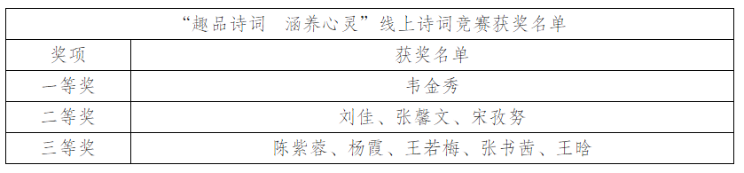 线上诗词答题赛获奖公示