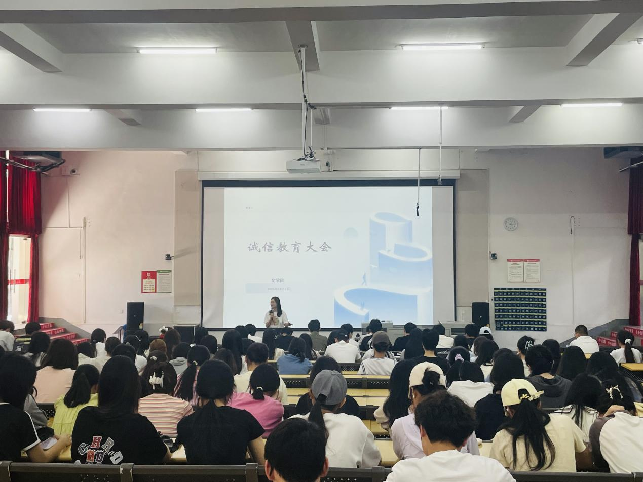 为贯彻落实《全国学生资助管理中心2025年工作要点》和《2025年广西学生资助工作要点》精神,促进家庭经济困难学生成长成才,广泛宣传国家资助政策,加强对受资助学生的诚信教育、感恩教育、励志教育,文学院于2025年5月12日下午15:00在西区功德楼107教室召开诚信教育大会暨奖助学金座谈会。本次会议由学院党支部书记岳莹主讲,文学院得到资助政策受助的学生参加此次会议。