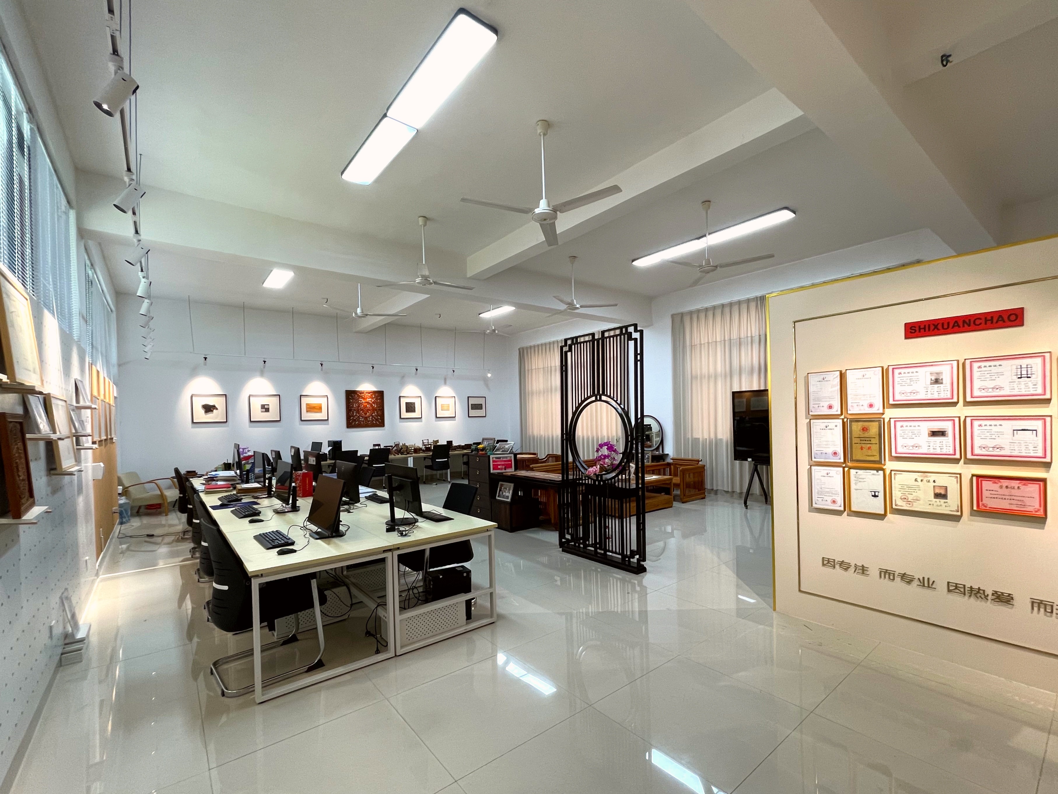 本工作室位于西校区公德楼403室,面积约130平方米,分属于建筑与环境艺术学院。工作室目前为《家具设计》课程授课教室,内设有红木家具展示区,合作洽谈区,设计工作区,工作室主要承担环境艺术专业相关课程中涉及到的实践实训任务,并组织、协调大师工作室的建设与管理,邀请行业大师来校授课、指导学生,提升学生的专业技能和职业素养。