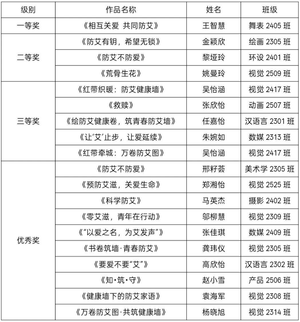 为广泛普及艾滋病防治科普知识,切实提升在校学生的防艾防护意识与社会责任担当,营造携手防艾的浓厚氛围,我校于2025年12月开展了以“万卷防艾图·共筑健康墙”为主题的防艾绘画作品征集活动。本次活动由校团委主办,校青年志愿者协会承办,爱心协会协办。
