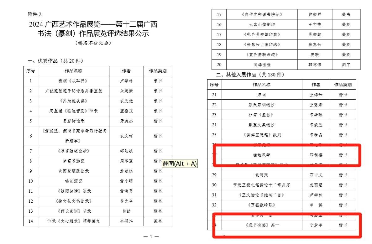 喜报!书法学院师生入展2024广西艺术作品展览