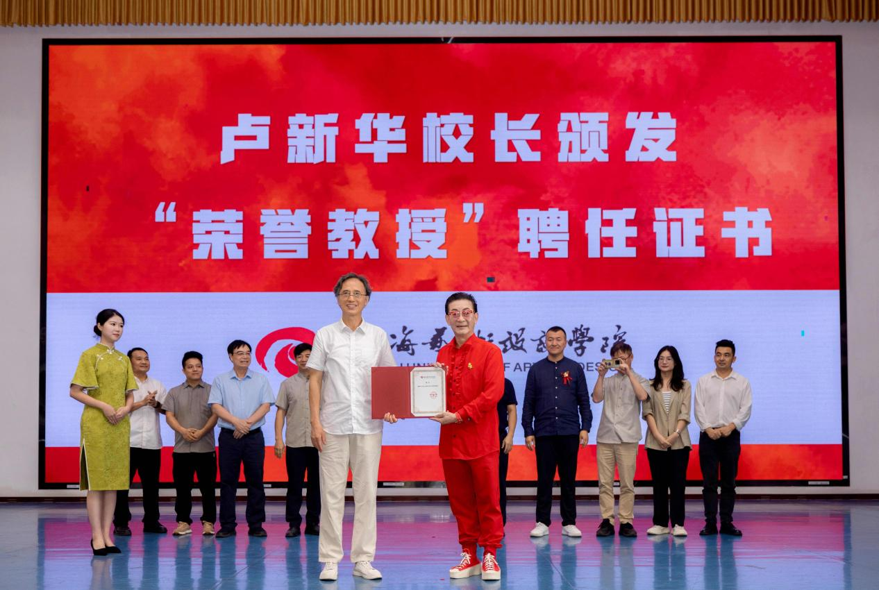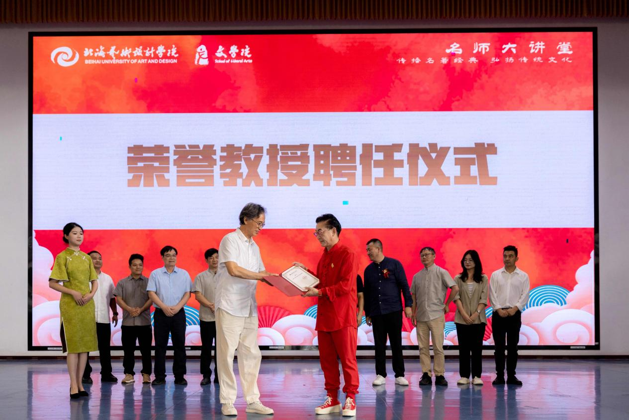 活动以荣誉教授聘任仪式拉开帷幕,当卢新华校长将北海艺术设计学院荣誉教授聘书授予六小龄童老师时,全场掌声如潮。这位以猴王形象树立艺术标杆的表演艺术家正式成为校园里传承文化薪火的引路人,为学术殿堂注入灵动的艺术生命力。