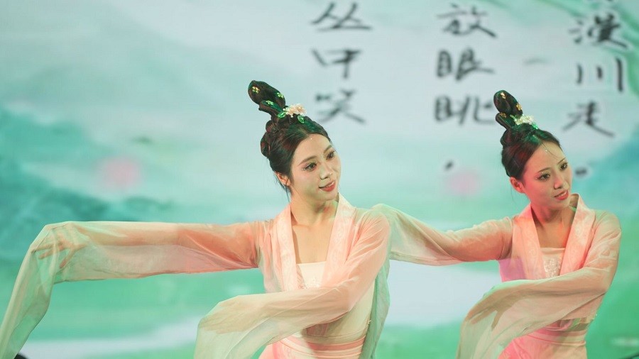 舞蹈表演专业2105班的《一日·一生》(指导老师:任家和、康伟)则将古典韵味与现代编排巧妙融合。《淡妆浓抹总相宜》以宋代美学为灵感,以优雅的动作展现出宋代文人的风雅与才情;《唐宫夜宴》复现了盛唐气象,舞者们身着华丽的服饰,仿佛重现了那个繁华而辉煌的时代。