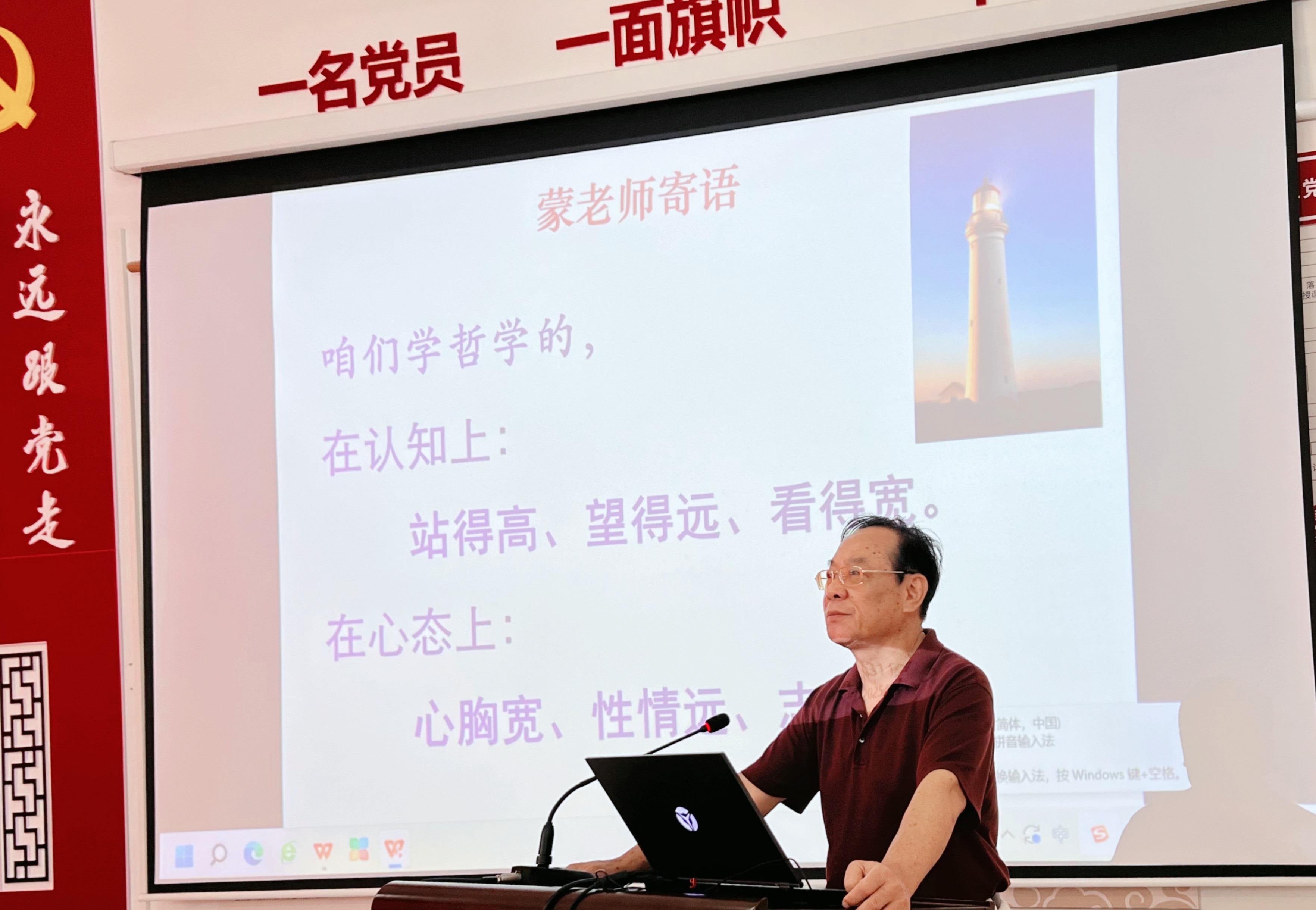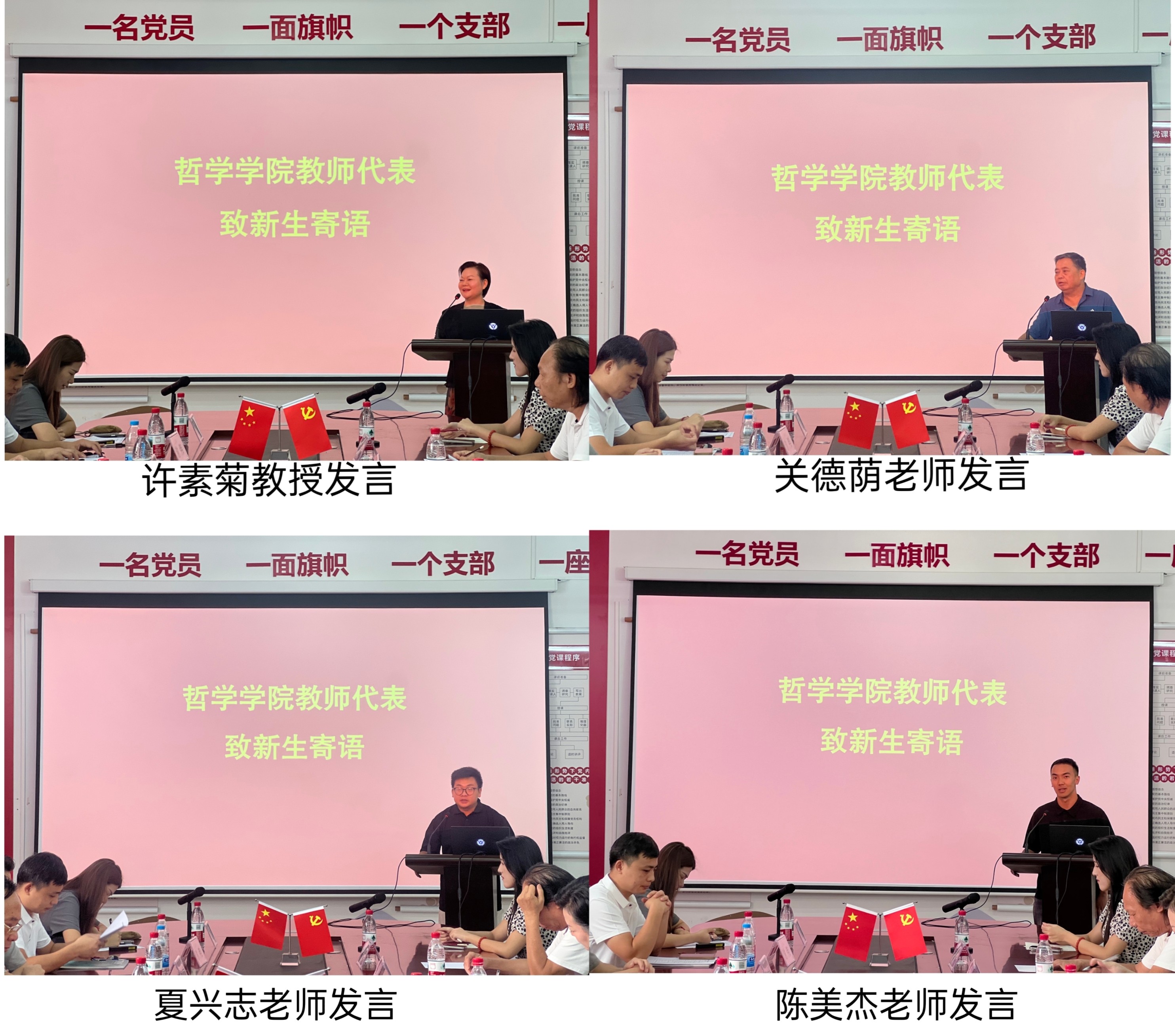 会议第二项议程,教师代表向新生寄语。外聘教授代表许素菊教授在发言中表示,学哲学不仅是学知识,更重要的是学会思考。她鼓励同学们在努力培养哲学思维、批判性思维和人文关怀中增长智慧。哲学之路漫漫,探索永无止境,她寄望新生们在此埋下热爱哲学的种子,以勤奋和汗水浇灌,锚定远大的目标,持之以恒的奋斗,在哲学的海洋里遨游,书写自己精彩的哲学人生。关德荫老师在新生寄语中强调,大学是审视自我,探索生命意义的黄金阶段,愿同学们时刻保持对生活的反思与追问,不要随波逐流,在哲学体系上找到属于自己的独特人生价值坐标。同时,希望同学们在钻研哲学理论时,不忘关注社会,把哲学所思转化为推动社会进步的实际行动,用哲学智慧为世界添彩。青年教师代表夏兴志老师和陈美杰老师鼓励同学们坚定哲学求学之心,始终保持对思考的敬畏,不断探索新知识,拓展自己的眼界,同时要培养坚韧的精神和品格,扎实塑造更好的自己。