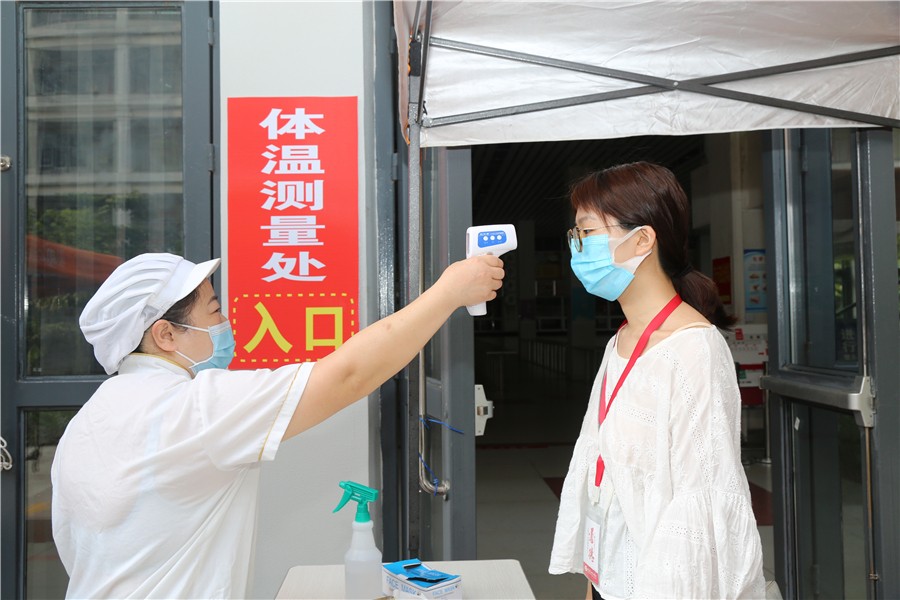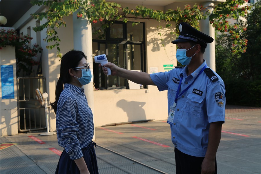 (学校大门报道出现体温异常者应急处置演练)