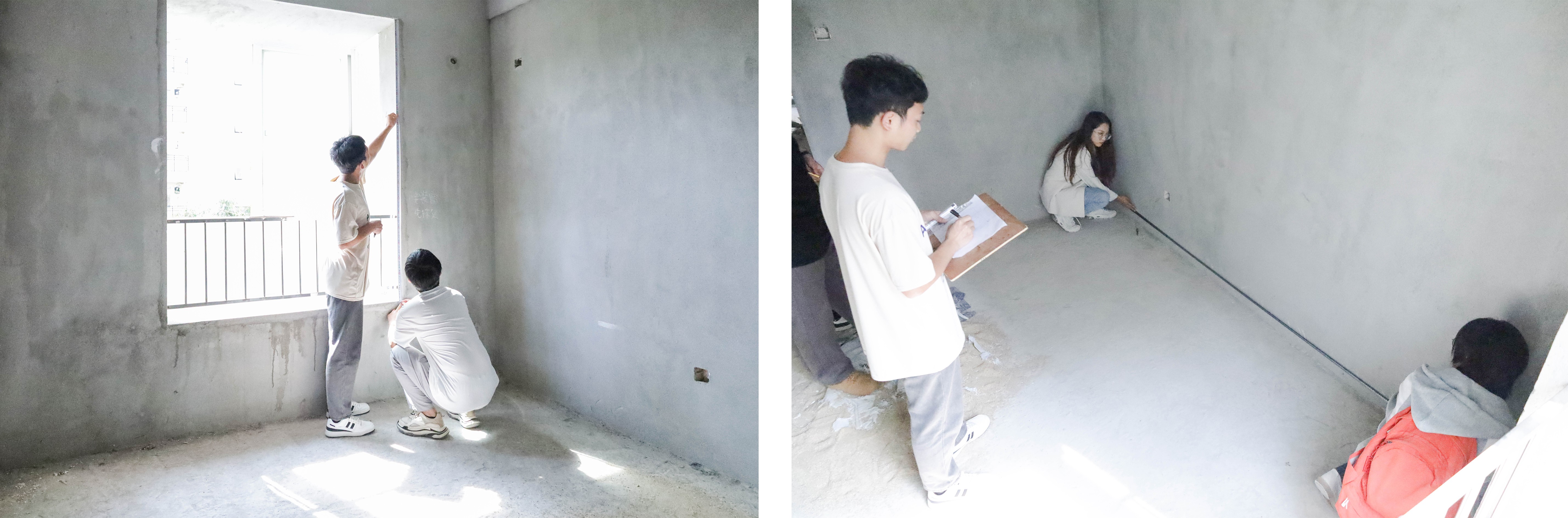 (师生展开量房)