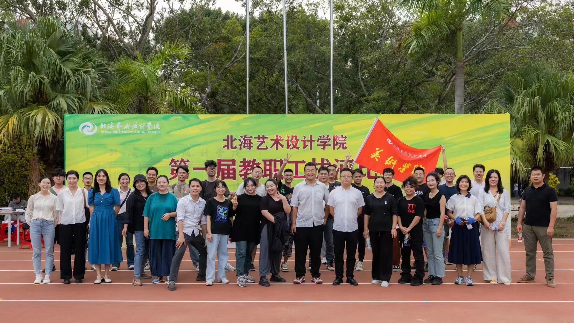 为倡导健康锻炼方式,丰富教职工业余生活,2023年10月27日,北海艺术设计学院于东校区操场组织开展第一届教职工拔河比赛。本次拔河比赛全校共有八个学院代表队参赛,比赛采取逐层淘汰和三局两胜的模式进行,美术学院参赛教师积极应战,心往一处想,劲往一处使,展现出青年教师的独特风采。在经过激烈的角逐后,美术学院最终获得教职工拔河比赛三等奖。(李伟民 摄)