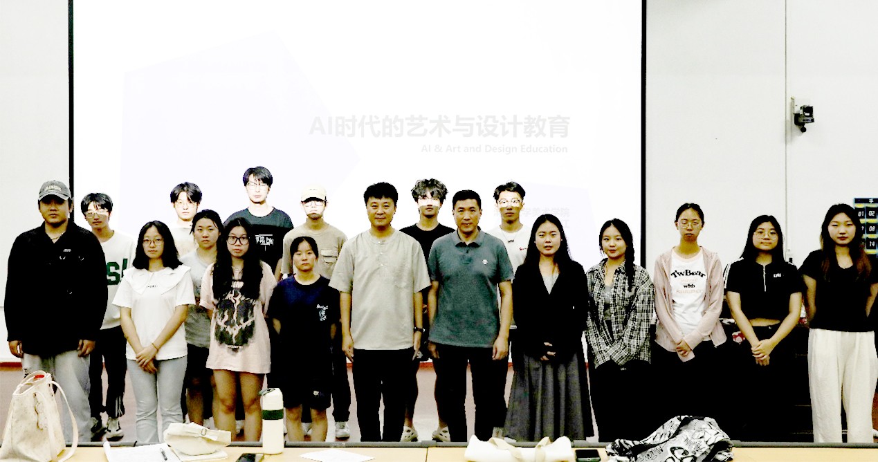 此次讲座不仅拓宽了学生的视野,也增强了他们对AI时代的艺术与设计教育的了解。最后,部分学生与杨东江教授进行合照,讲座在现场师生热烈的掌声中圆满结束!(胡婷烨/摄)