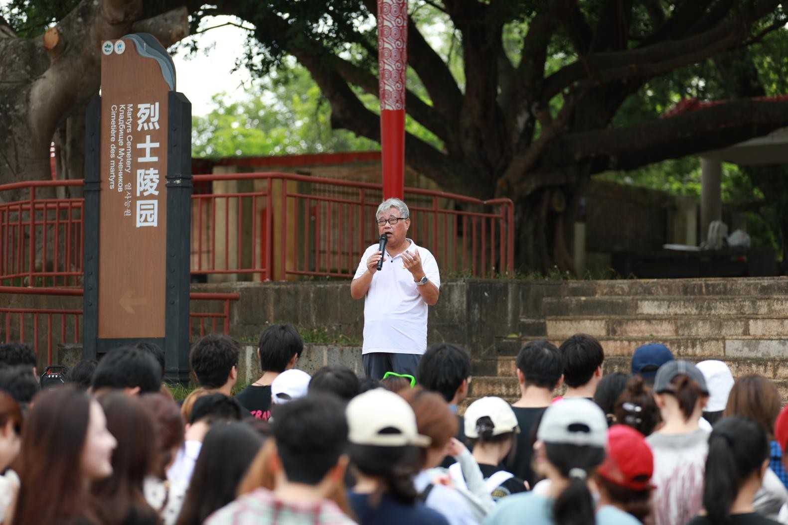 10月15日,全体师生在涠洲岛红色广场开展了“红色涠洲”实践教学课程。马克思主义学院院长姜献生教授对涠洲岛的革命历史进行了讲解,增强了学生们的爱国情感和历史责任感。