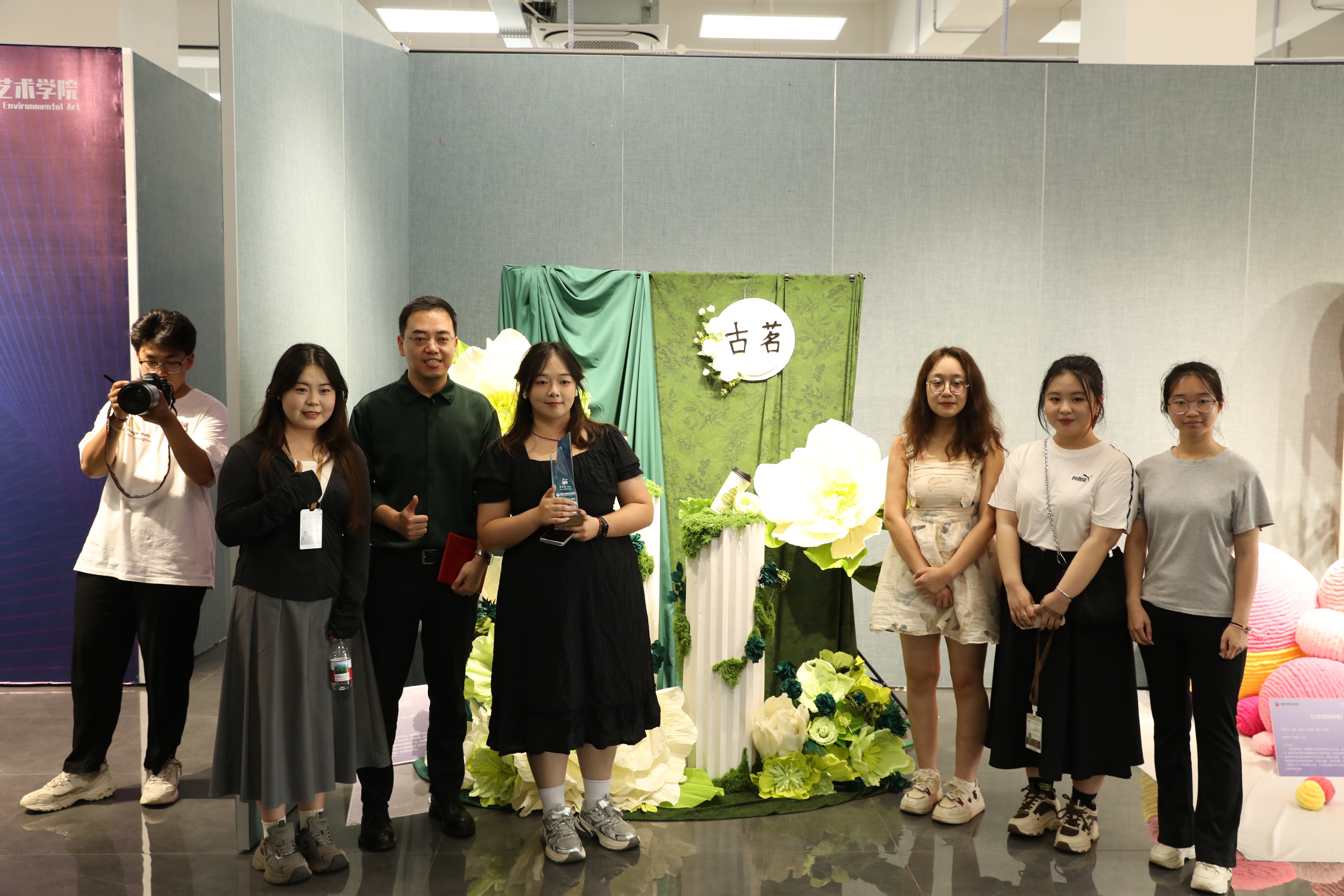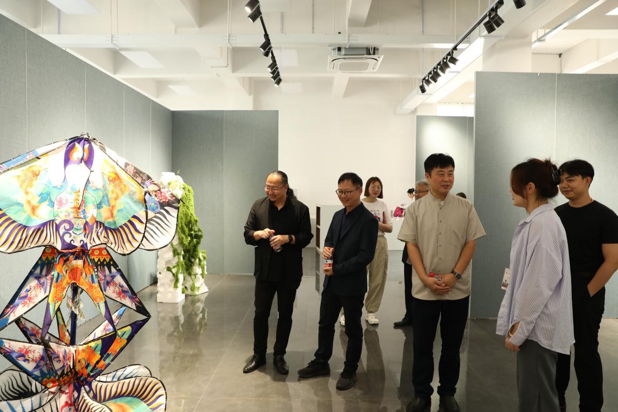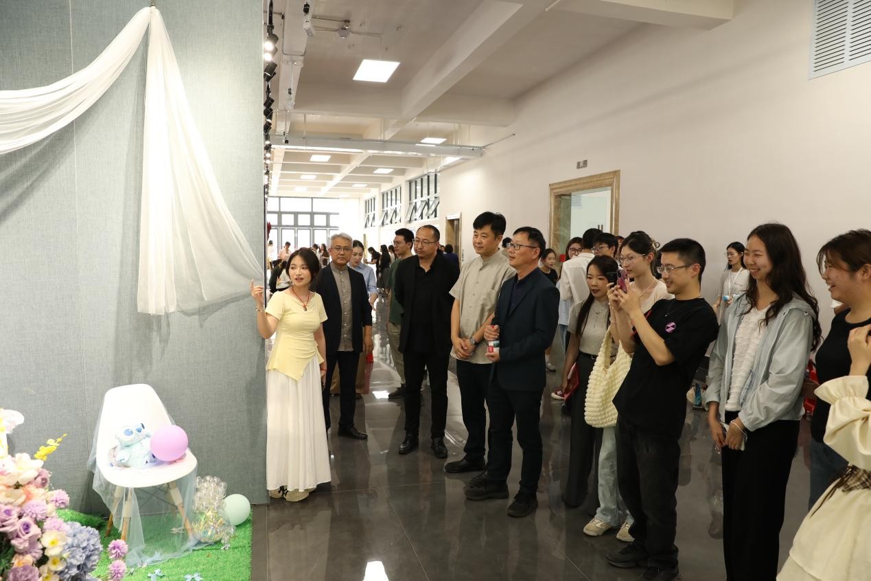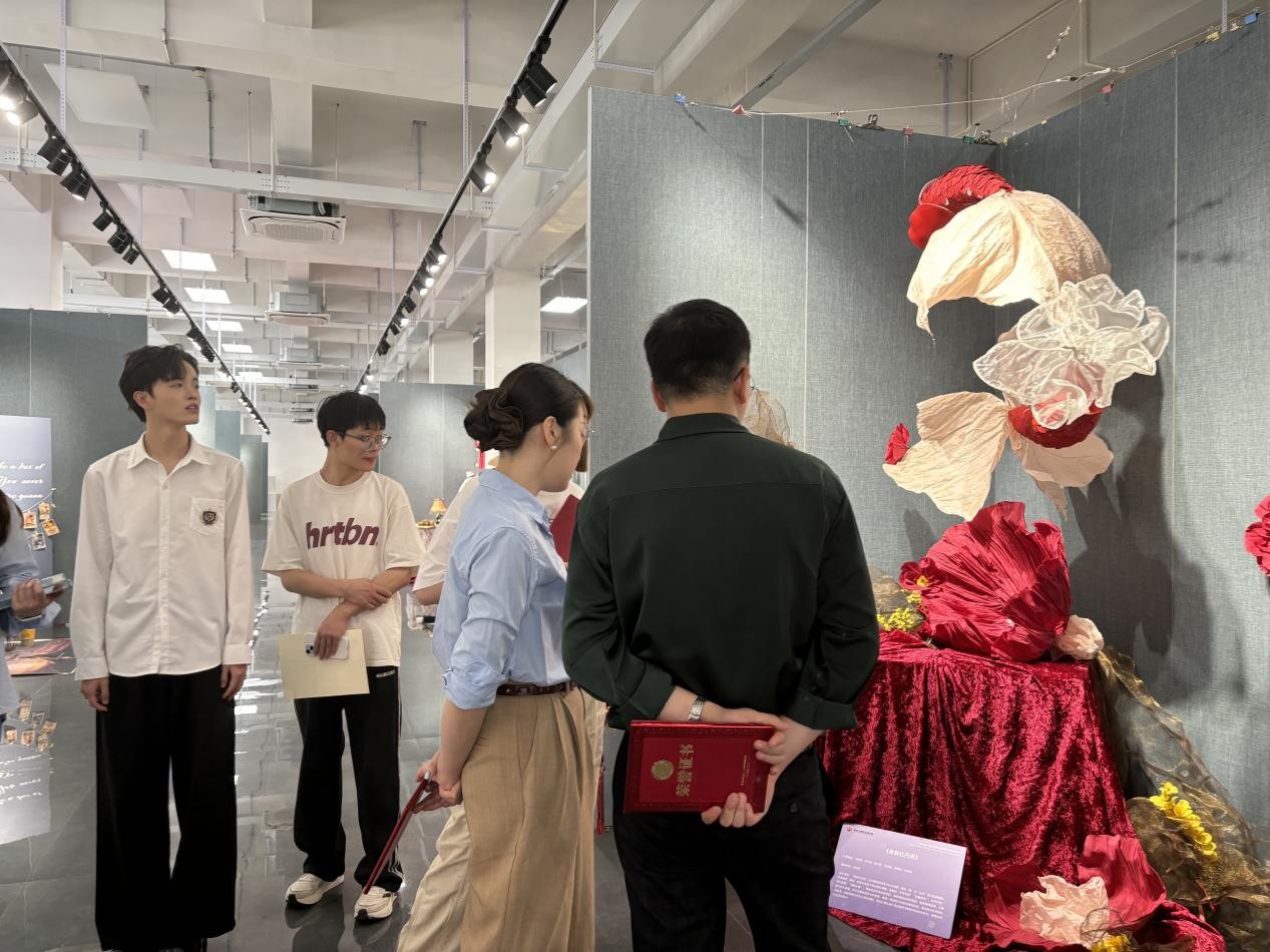 在最后的观展互动环节,现场气氛热烈非凡。各组参展学生们满怀热忱,纷纷化身为“作品代言人”,他们以自信且专业的姿态,将自己小组在创作过程中的奇思妙想、攻克的重重难关以及蕴含其中的设计理念娓娓道来,生动地展现出作品背后的故事,力求让领导、嘉宾和老师们全方位领略作品的魅力。与此同时,他们还展现出了极高的学习热情与谦逊态度,专注地聆听着领导、嘉宾和老师们提出的宝贵指导意见。整个互动环节,思想碰撞出的火花四处绽放,为这场美陈展增添了别样的精彩与深度。