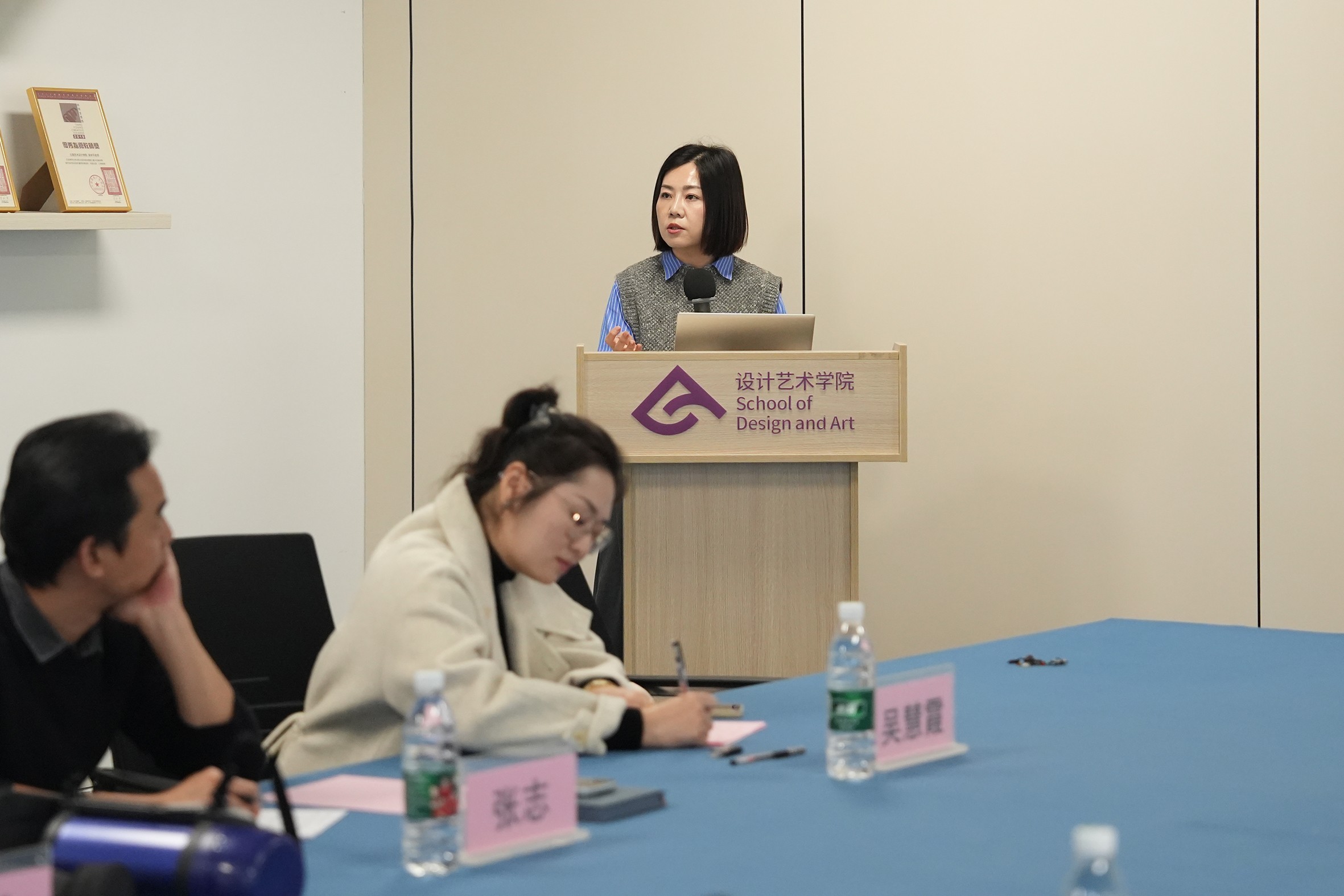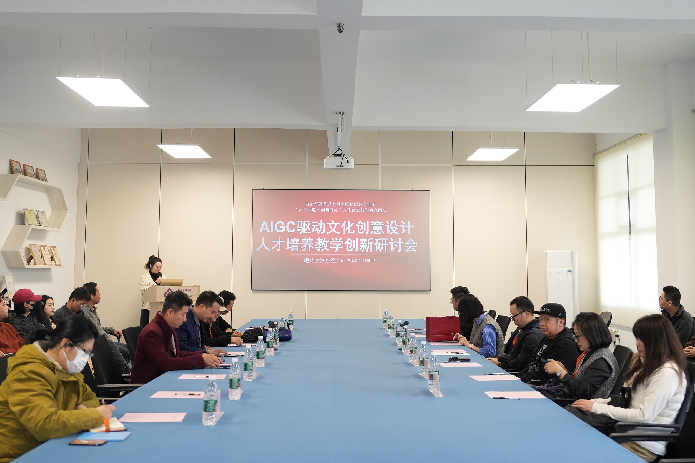 2025年1月8日,设计艺术学院于伦理楼408召开AIGC驱动文化创意设计人才培养教学创新研讨会出席本次会议的领导嘉宾即时设计联合创始人周凝,西安立木斤企业文化传播有限公司创始人陈栋,首都师范大学科德学院教学副院长赵芳、视觉传达设计系主任谢雪泉、视觉传达设计专业教师李海鹏、会展专业教师舒鹏、学生辅导员刘俊杰;北海艺术设计学院设计艺术学院院长李林平、主管教学副院长白建强、副院长李佩、吴慧霞、教授张昕、教授任丽凤视觉传达设计专业教研室主任张志以及学院骨干教师团队。会议由设计艺术学院副院长吴慧霞主持。