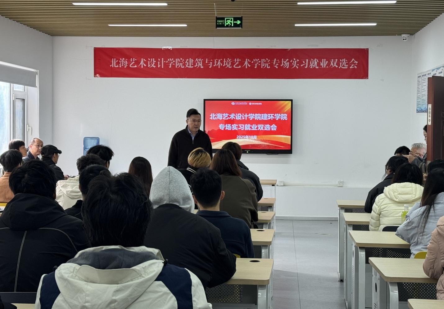 2025年10月31日上午,由北海艺术设计学院建筑与环境艺术学院主办、北京实践基地(宏福)承办的专场实习就业双选会在北京实践基地(宏福)服装楼顺利召开。本次活动以“精准对接企业需求、搭建校企沟通桥梁”为核心,构建起“宣讲+双选”的就业服务场景,为环境设计专业学子打通实习就业“最后一公里”。