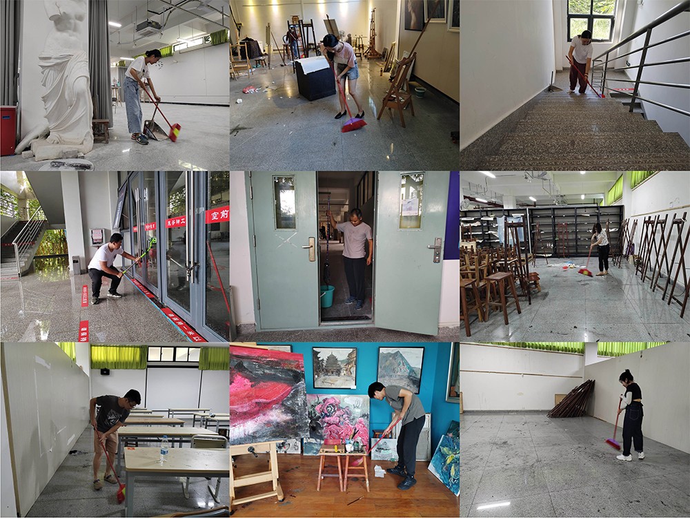 2021823日,美术学院全体教师在龚为副院长亲自带领下,对艺术楼进行了一次彻底的大扫除。经过了一个多月的暑假,又有几次台风天诸多暴雨天,校园里变得一片狼藉。