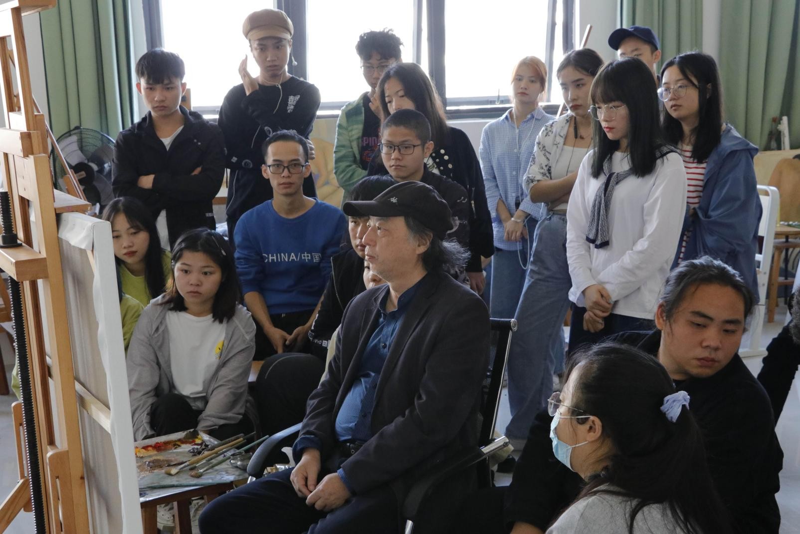 每完成一个部分,曲教授就与现场师生分享创作技法和艺术思考,大家全神贯注欣赏曲教授创作过程。