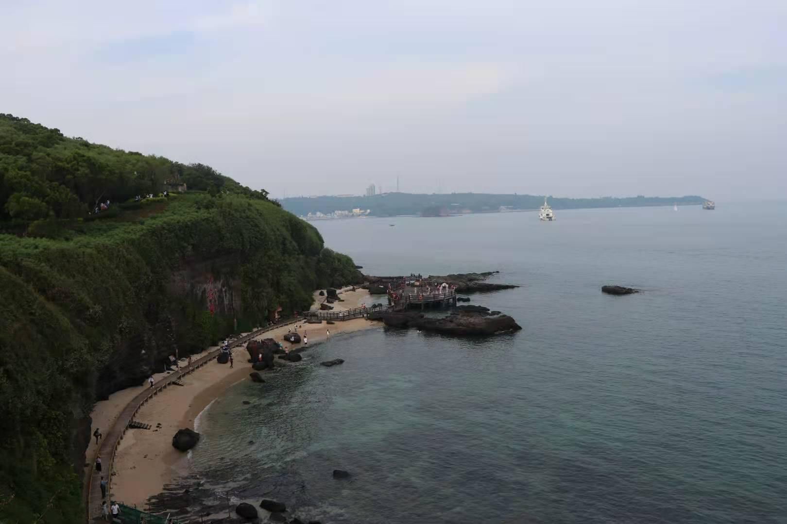 平日涠洲岛上是安宁祥和,西南远望,鳄鱼山景区宛如一只“绿色巨鳄”潜伏于海岸之上,或许在准备捕食过往的渔船,或许在望着汪洋大海,倍感茫茫。“绿色巨鳄”欲似要张开双臂将浩然大海怀抱于胸,紧紧抱住万千年前将熔浆喷薄而出的火山口,似乎那里有生命之宝藏。现今站在鳄鱼山景仍然能够看到偌大的火山口,当年磅礴大气的火山喷发景象恍若昨日,闭上双目似乎仍能够感受得到那种轰然而现的壮观与美丽。鳄鱼山树木葱郁,站在鳄鱼山上万千海洋可尽收眼底。
