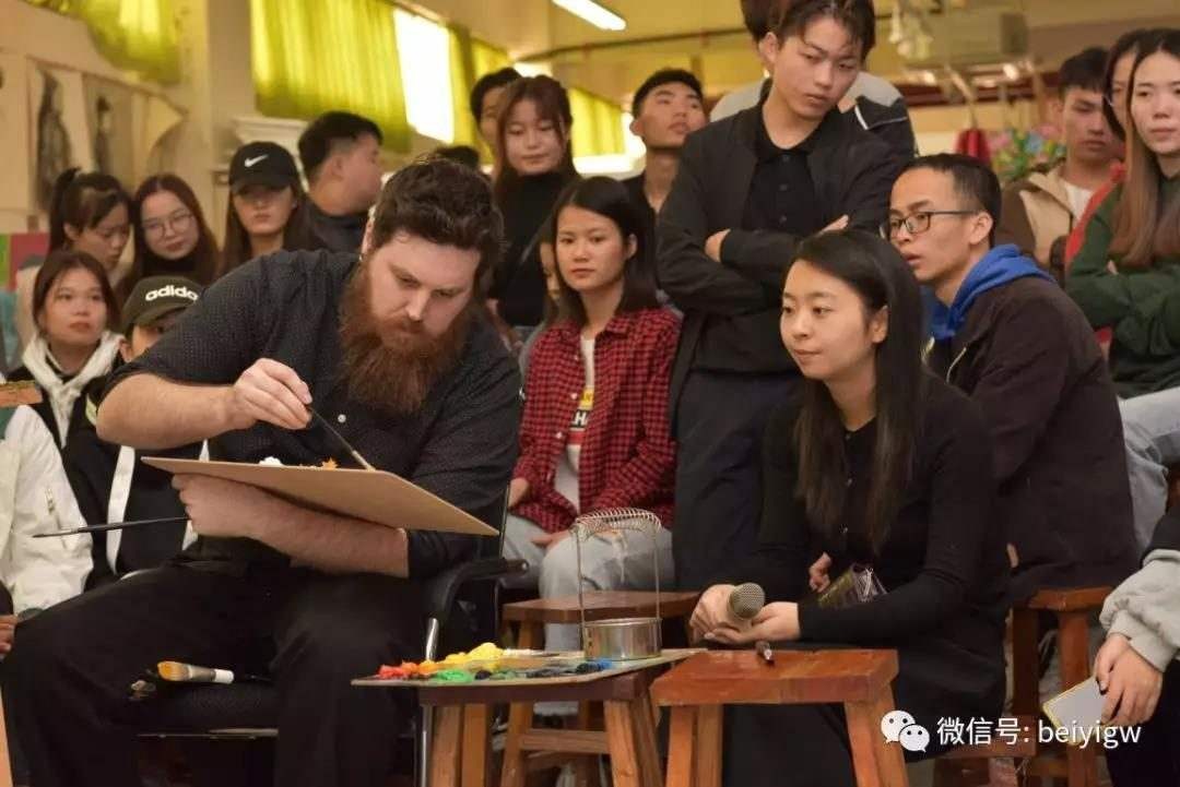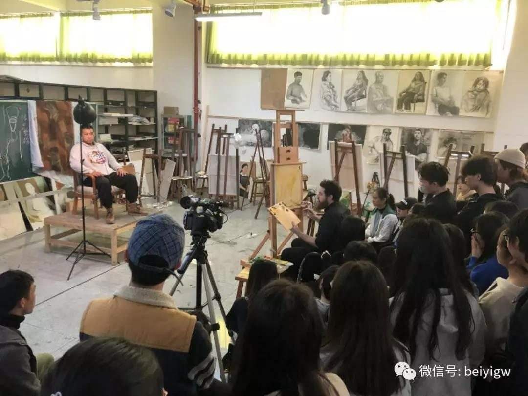 12月13日上午,迪伦主任亲临18级绘画教室,对绘画班色彩人物课程学生作品进行点评指导。为期三天的交流访问活动圆满结束。 (陈建江 摄)