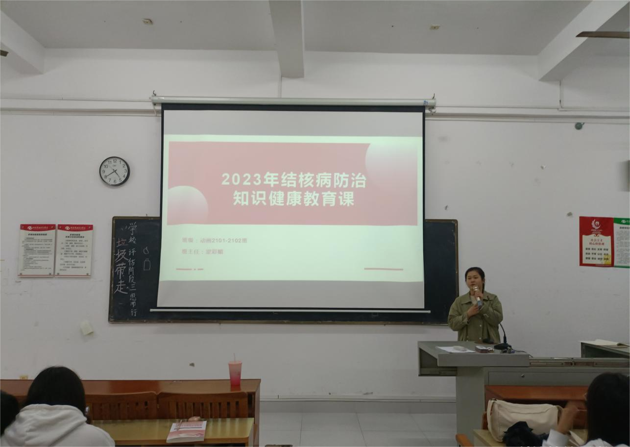 开设了结核病防治知识健康教育课,课程主要强调结核病的概念、危害、传染源与传播途径以及如何防范传播等系列内容,为学生普及对结核病危害的认识。组织学生集体观看由自治区教育厅、自治区卫生健康委员会联合主办的《2023年世界防治结核病日广西校园宣传教育科普大讲堂》直播视频,同时为学生们发放《学校结核病健康教育宣传核心知识》,向学生普及结核病综合防治知识,教育学生养成健康的生活方式,提高自我防范能力。(周晓敏/摄)