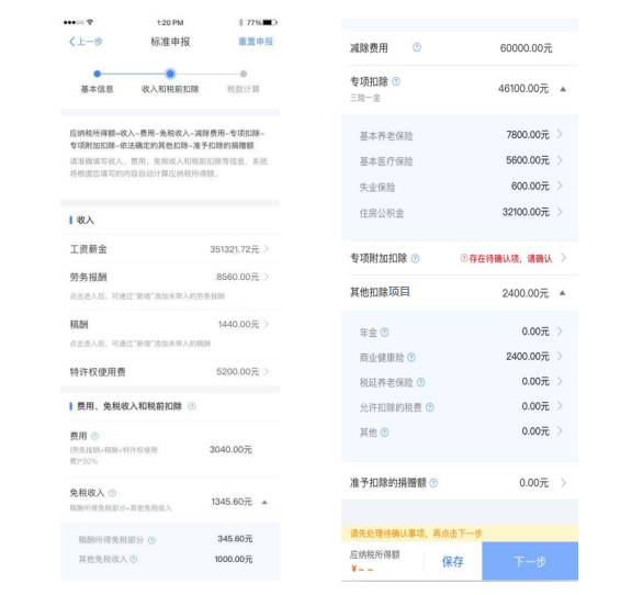 若同一专项附加扣除有重复事实或同时存在住房租金 和住房贷款利息,则系统界面上将出现提示。此时,您需要对相关信息进行确认。