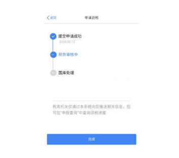 在申报提交完成页面上,选择【申请退税】。