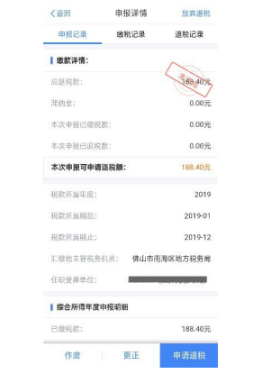 若您存在多缴税款,可点击【申请退税】。
