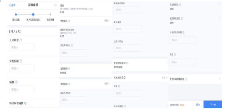 除专项附加扣除信息、商业健康险、税收递延养老保险、 准予扣除的捐赠额、减免税额外,可直接填写申报表各项数据。