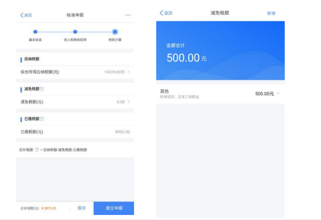 如您有减免税事项,可以点击【减免税额】新增相关信 息。确认结果后,点击【提交申报】。