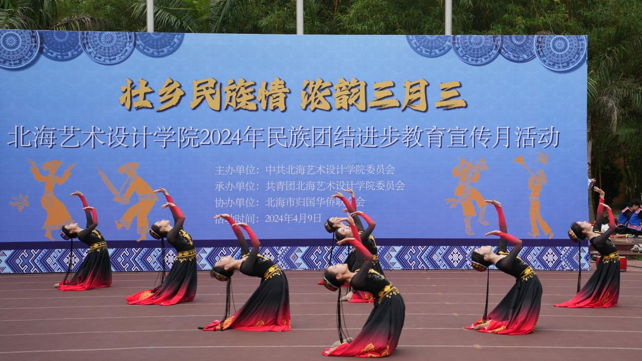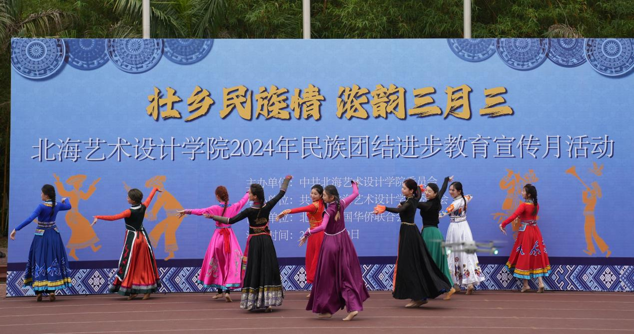 4月9日,学校党委联合学校团委、北海市归国华侨联合会在西区操场开展以“壮乡民族情 ,浓韵三月三”为主题2024年民族团结进步教育宣传月活动。
