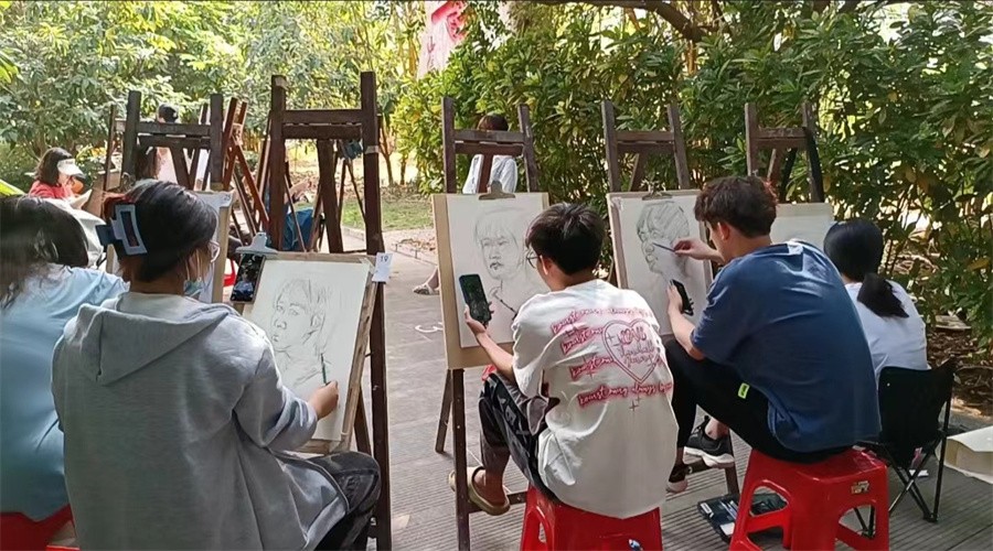 本次活动由美术学院分团委学生会全体成员参与活动现场布置、规则讲解等维护管理工作,以保障比赛的有序进行。活动形式以个人为单位,参与比赛设立的素描头像现场写生、泥塑头像现场写生、速写人物现场写生三大项目。在主持人宣布本次现场造型基础技能比赛正式开始后,同学们走出课堂,以绿茵为背景,感受自然之美,留下独特的写生记忆。经过四个小时的比拼,素描、速写、泥塑三大项目比赛圆满完成,同学们在造型能力上的学习与交流进一步深入加强,专业能力得以充分展示。