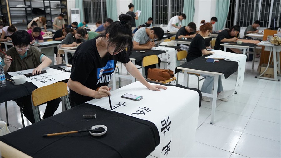 据悉,本次终评现场赛分为西校区硬笔书法组,东校区软笔书法组以及线上组。比赛现场,硬笔书法组的选手们笔走龙蛇、铁画银钩;软笔书法组的选手们笔酣墨饱、行云流水;现场书写氛围如潮,笔墨之香润人心田。