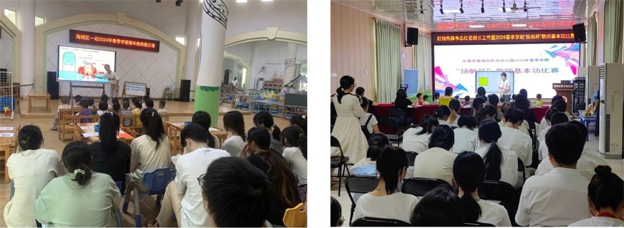 为增强学生的教育教学能力和专业素养,近日,人文教育学院学前教育专业2021级、2022级和2023级的同学分别赴银海区机关幼儿园和海城区第一幼儿园开展教育见习。