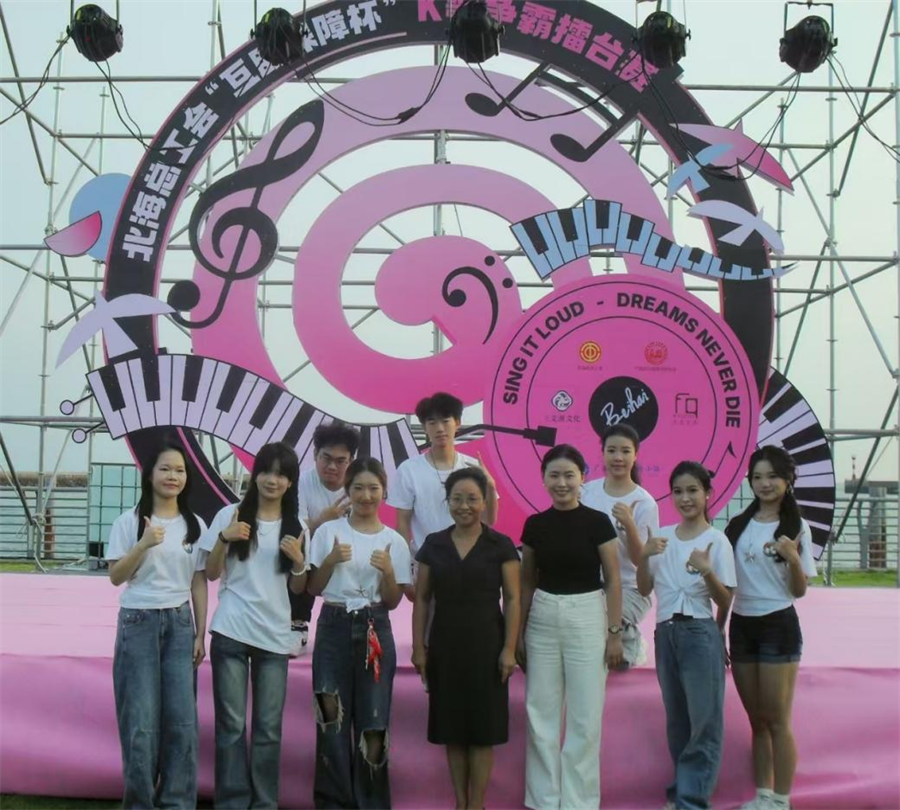 10月10日晚,北海市 “互助保障杯” K 歌争霸擂台赛启动仪式在广旅奥特莱斯小镇举行。由我校舞蹈学院独立创作并首次上演的赛事主题曲舞蹈《北海等你来!》在活动中精彩呈现,为现场观众带来兼具滨海特色与艺术感染力的视听体验,标志着本届K歌争霸擂台赛正式启幕。