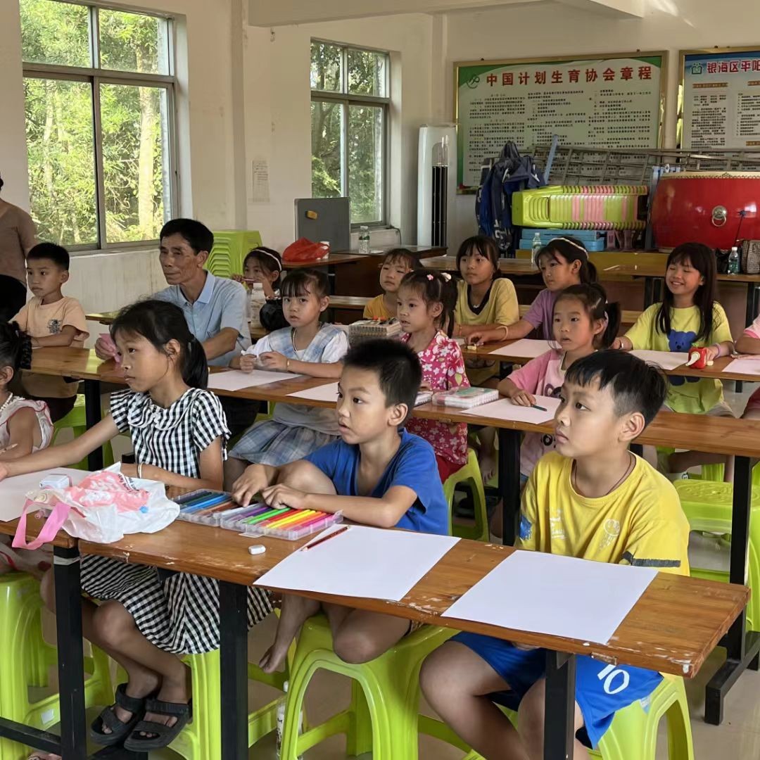 接下来我们将镜头转移到东山村这里,今天在这里开展的是“手绘权利,童享未来”世界儿童日主题绘画活动。志愿者教给小朋友们的不仅仅是渲美绘画的知识和技巧,还有对儿童的世界启蒙。志愿者们将一颗颗希望的种子埋在他们心中,静待有一天破土而出。小朋友们画出的一个个地球,是他们对世界的探索,是他们对未来的渴求,是他们新人生的起点。