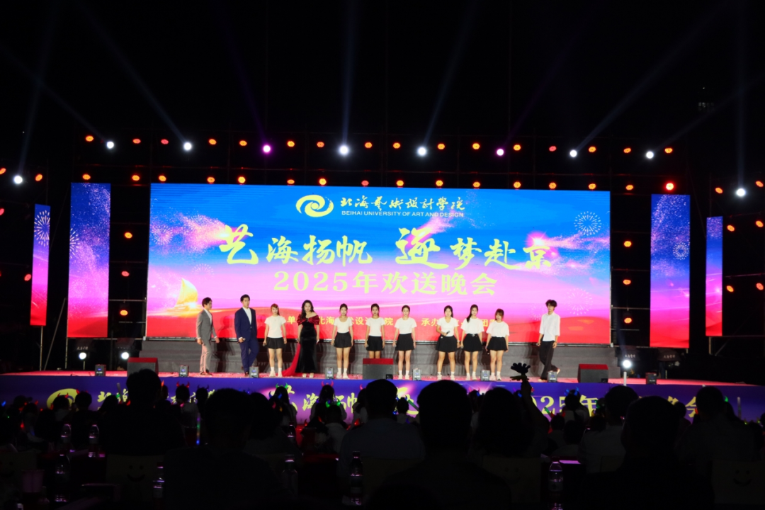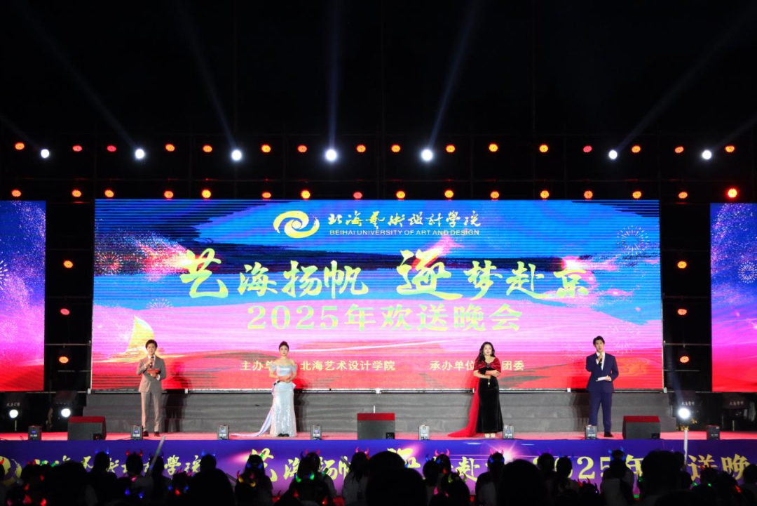 5月29日,我校在西校区操场开展北海艺术设计学院“艺海扬帆,逐梦赴京”2025年欢送晚会。这场精心筹备的视听盛宴,既是对2022级学子三年来拼搏奋进、成长蜕变的深情回望,更满载着对他们即将奔赴北京、开启新征程的诚挚祝福与殷切期许。